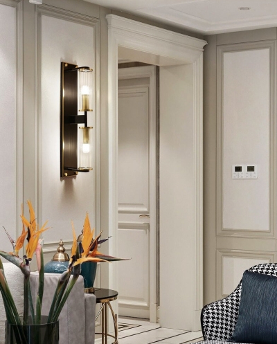 2つの電球が付いた溝付きガラスの壁取り付け用燭台